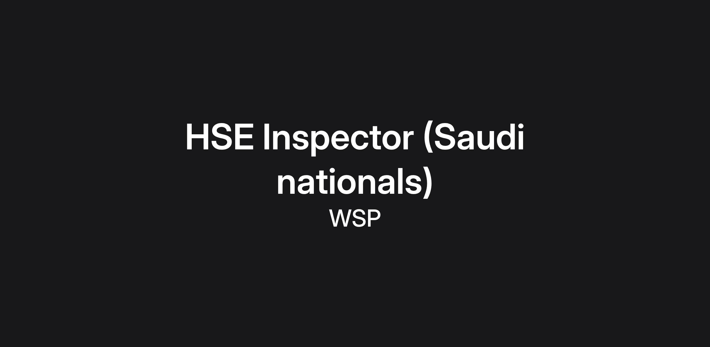 DescriptionWSP is seeking a qualified and motivated HSE Inspector to join our team on a major infrastructure project in Riyadh. The role will be responsible for monitoring, inspecting, and ensuring compliance with health, safety, and environmental standards on-site.