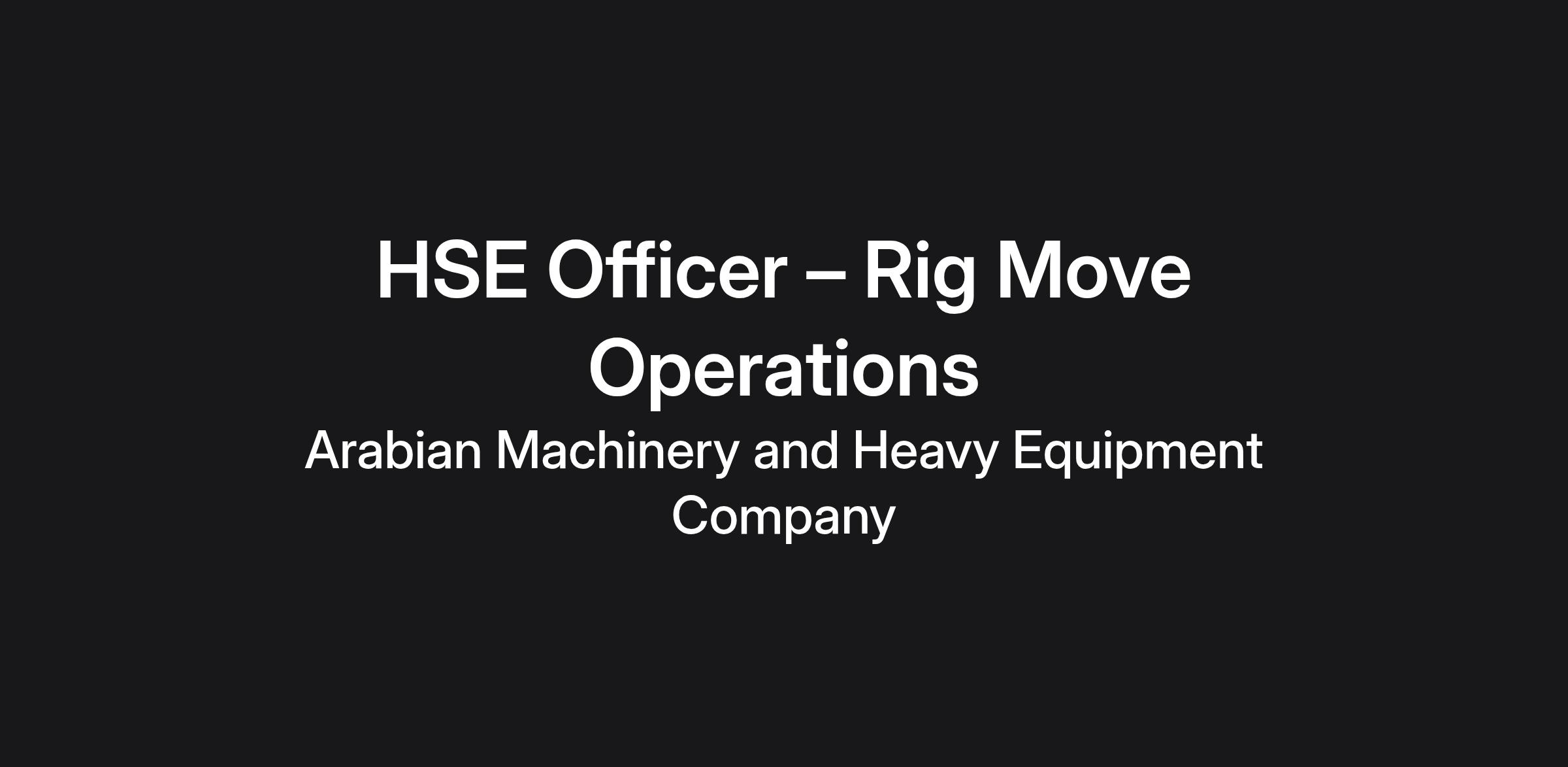 Job Title: HSE Officer – Rig Move Operations