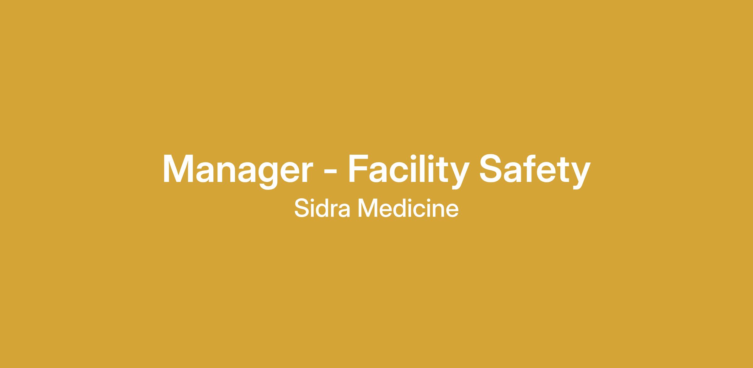 The primary mission of the Manager - Facility Safety is to protect life and property through the implementation of the building's safety plan including the management of the Fire Command Station and the supervision of the fire response team, floor wardens, and deputy floor wardens and building evacuation supervisors. The incumbent ensures a safe environment for employees, visitors, and patients in accordance with all government regulations and Sidra’s policies and procedures. He/She reacts in all emergencies with the authority of the Facilities Executive Director and Chief of Corporate Services. The post-holder manages general safety, hazardous safety, and Life Safety section. He/she leads, directs and motivates the Team Members in his assigned chain of command. One of the main responsibilities for the Manager Facility Safety is to prepare the hospital for a wide variety of emergencies and to ensure Joint Commission International ‘Facility Safety’ compliance by conforming to Joint Commission compliance as it pertains to the Environment of Care and Life Safety. The incumbent in this position also ensures that Facility business continuity plans are in place that will allow the hospital to function in the event of any emergency.