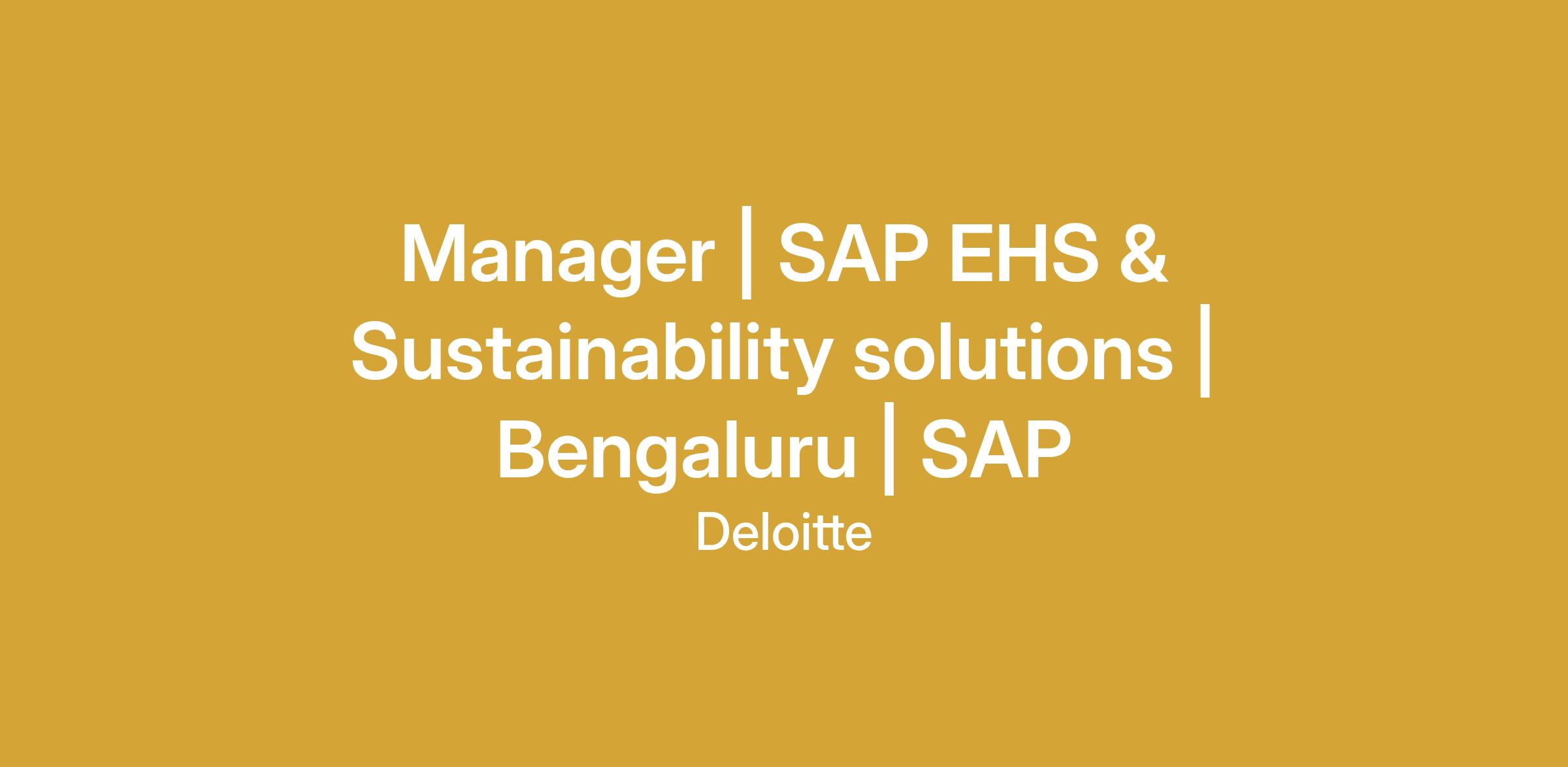 Position - Manager / SAP EHS & Sustainability Lead