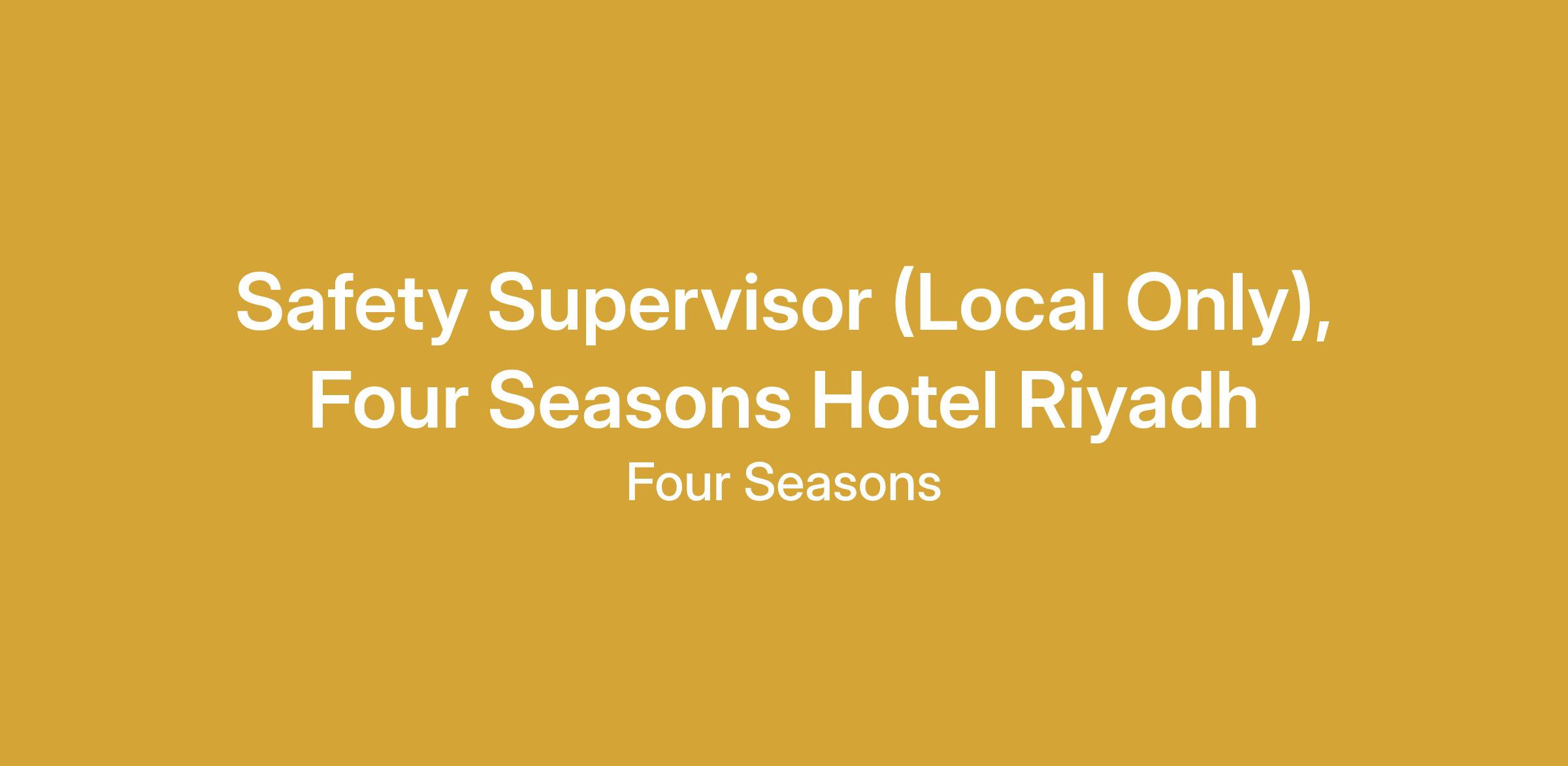 An architectural icon in the heart of Saudi Arabia’s vibrant capital soaring over the city in the iconic Kingdom Tower, Four Seasons Hotel Riyadh is a buzzing hub at the forefront of style and sophistication. Redesigned interiors bring authentic Saudi heritage and craftsmanship to life, while our distinguished team provides a bespoke experience through thoughtful, personalized service and hospitality.As a Safety Supervisor, you will be responsible for overseeing the day-to-day safety and security operations of the property, ensuring the safety of all guests, employees, and hotel assets. You will support the implementation, monitoring, and continuous improvement of all safety and security policies, procedures, and standards in line with Four Seasons expectations.