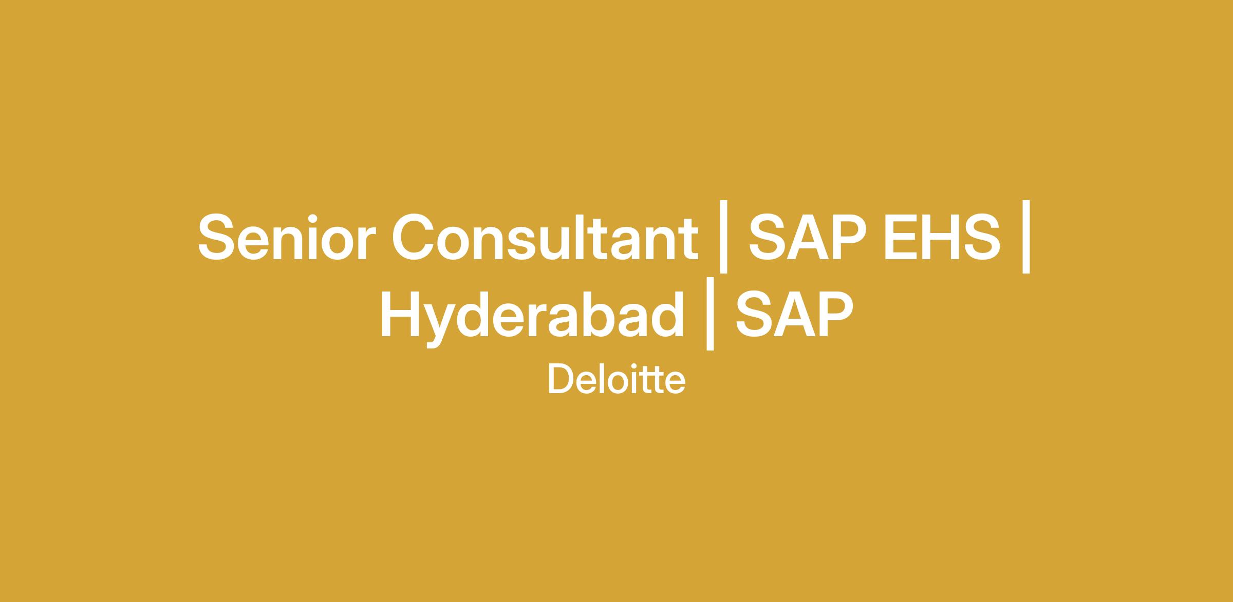 Senior Consultant | SAP EHS | Hyderabad | SAP