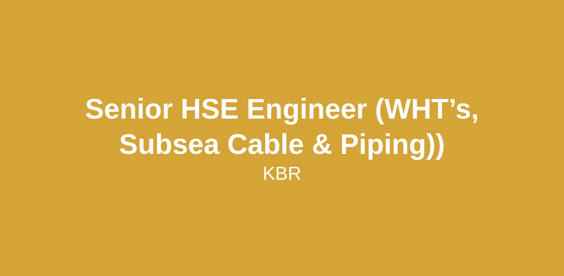 Senior HSE Engineer (WHT’s, Subsea Cable & Piping))Belong, Connect, Grow, with KBR!