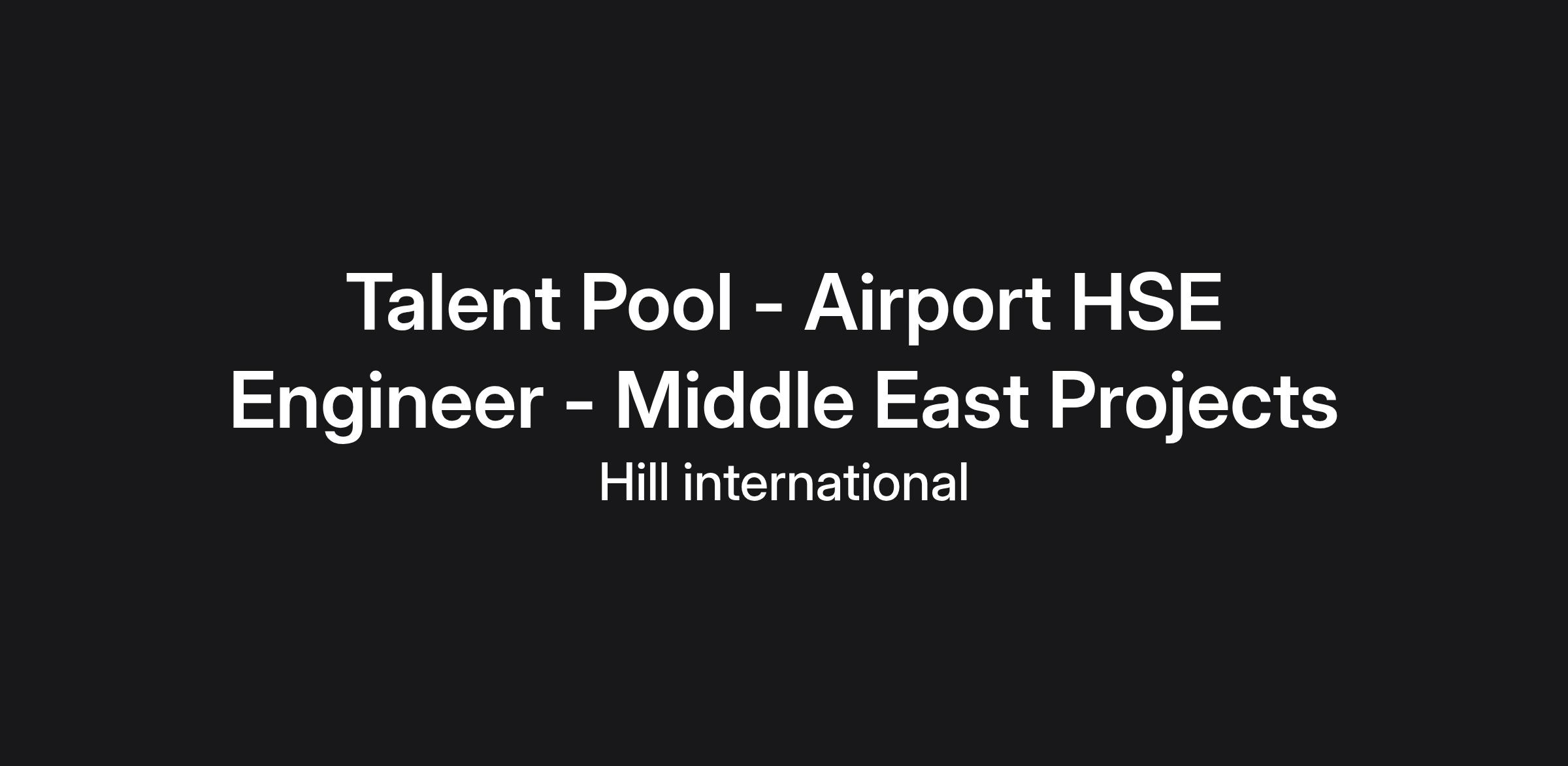 DescriptionTalent Pool – HSE Engineer roles for Middle East projects focus on supporting the implementation of health, safety, and environmental systems across complex infrastructure and aviation developments. Candidates are responsible for site inspections, risk assessments, incident reporting, and ensuring compliance with HSE policies and regulatory standards. This talent pool targets proactive professionals with strong technical knowledge and experience in maintaining safe working environments on large-scale projects in the region.