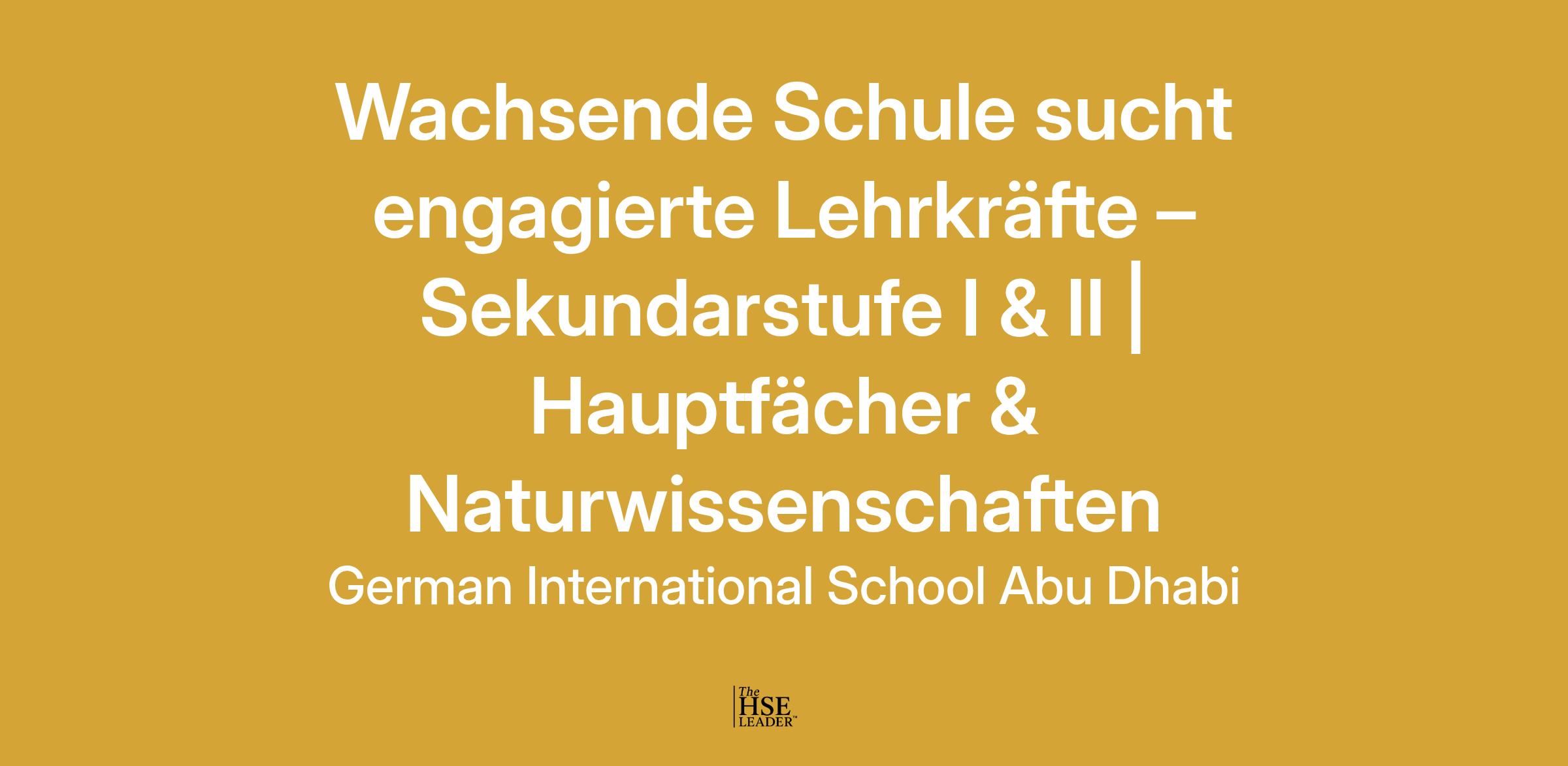 Die Deutsche Internationale Schule Abu Dhabi wächst – und mit ihr unser vielfältiges Bildungsangebot. Für das Schuljahr 2025/26 (Vertragsbeginn: 01.08.2025) suchen wir qualifizierte, engagierte und weltoffene Lehrkräfte für die Sekundarstufen I und II, die Freude daran haben, junge Menschen auf ihrem Bildungsweg zu begleiten und sich aktiv in unser Schulleben einzubringen.